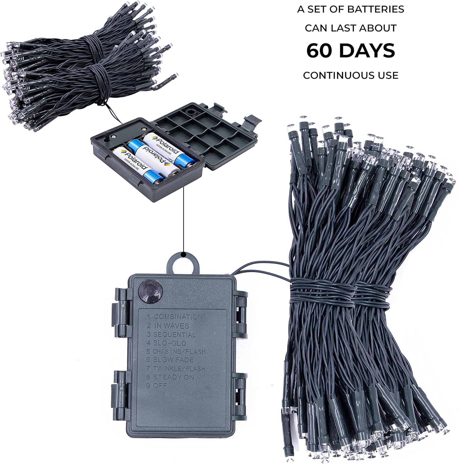 Battery operated Christmas Lights have improved greatly in recent years. With the advent of LED’s, which use less than a tenth of the electricity compared with traditional filament bulbs, we now have sets which last for weeks at a time and have built in timers to turn them on and off again. They come with weatherproof battery boxes which usually take 2- 3 AA batteries (larger sets usually use higher capacity C or D size batteries). This makes using extension leads with waterproof boxes / sockets or running wires out of windows etc redundant! I’ve been using the battery ones at home now for a few years now. It makes it sooo much simpler!